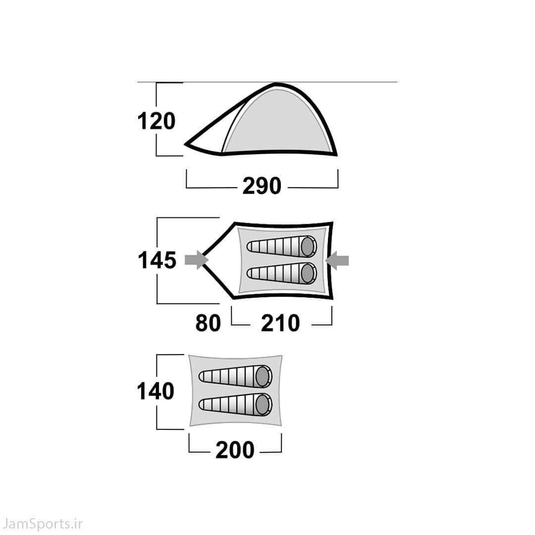 • چادر بیرونی: پلی‌استر ۱۸۵T با پوشش PU (ضدآب ۳۰۰۰ میلی‌متر)